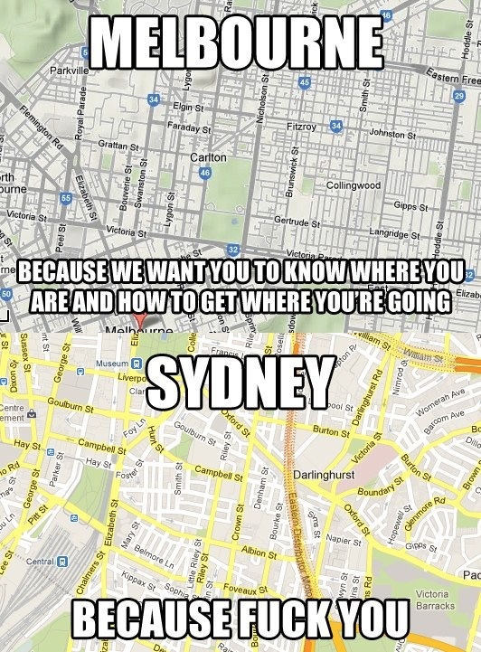 墨尔本最大的特点,就是一张车票全部通用,电车,bus和火车。悉尼这点差很多,高峰时city行车困难,车票要单独购买。到市区不敢开车,因为没有位置。墨尔本的街道特别宽敞,没有悉尼那种狭隘的感觉。另外悉尼有很多单行道,墨尔本的街道四四方方,和古长安一样规划,特别方便。