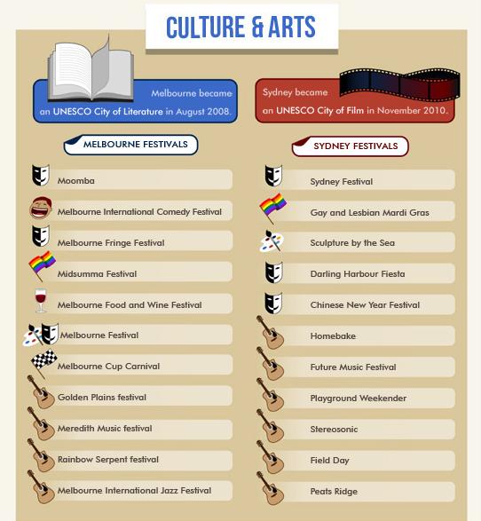 悉尼作为自由港,在国际上的知名度大于墨尔本,商业发达,全球资源更易关注悉尼。相对于墨尔本,明星爱去悉尼。但是,墨尔本却拥有澳网,墨尔本杯,F1大奖赛等国际知名赛事及各种文化艺术盛会,文体活动的规模和规格强于悉尼。