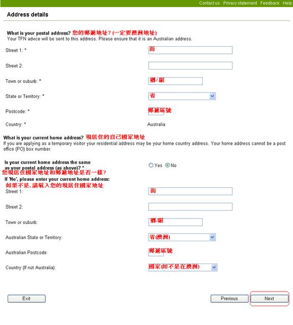 步骤六:请填入澳洲邮寄地址,若居住地址与邮寄地址不同,请填写于下方第二地址区块,填妥后请按NEXT