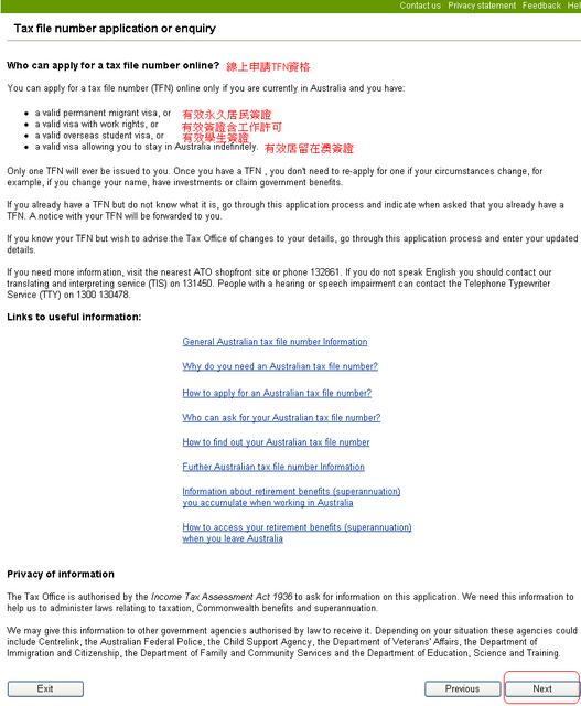 步骤一: 在线申请TFN资格,确认你申请税号资格后,请按NEXT